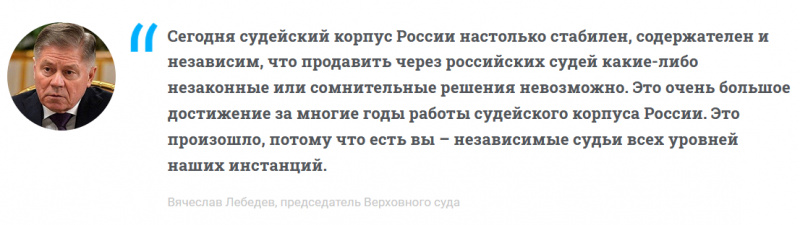 А теперь я предлагаю встать и почтить эти простые, но прекрасные слова исполнением Гимна Советского Союза. Молча. Помянув, так сказать, "независимых судей всех уровней их инстанций".