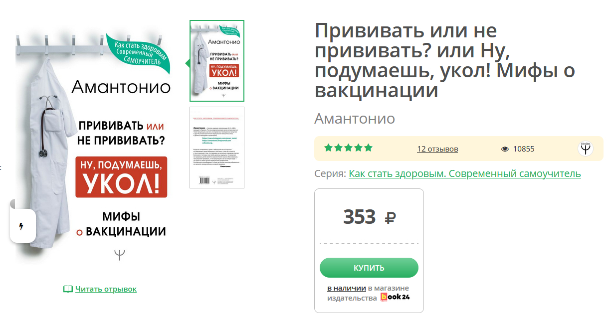 Нет, я понимаю, бабки не пахнут. Но зная о существующих проблемах с этими долбанутыми на всю голову антипрививочниками, с чьей любезной помощью сейчас снова возникают эпидемии заболеваний, с которыми человечество вроде бы справилось давным-давно, выпускать антипрививочную книжку этого долбанутого блогера-анонима Амантонио - это, ребята, уже совсем зашквар какой-то! Ладно бы продолжали публиковать книжки о том, что Земля плоская - это хоть на здоровье не влияет.