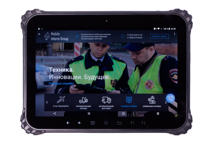 Ёмкости съёмного морозостойкого аккумулятора достаточно для 10–12 часов работы планшета без подзарядки при температуре от –20 С° до +60 С° и 4–5 часов при снижении температуры до –30 С°. Есть функция «горячей замены» АКБ, позволяющая обеспечить непрерывную работу устройства при замене батареи.