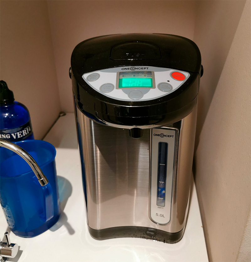 Некоторое время я был без термопота, грел воду новым чайником Xiaomi. Но чайник хотя и отличный, однако после термопота пользоваться им было не слишком удобно. Сначала кипятишь - вода слишком горячая, приходится разбавлять. Потом он уже остыл - нужно снова кипятить, морока.