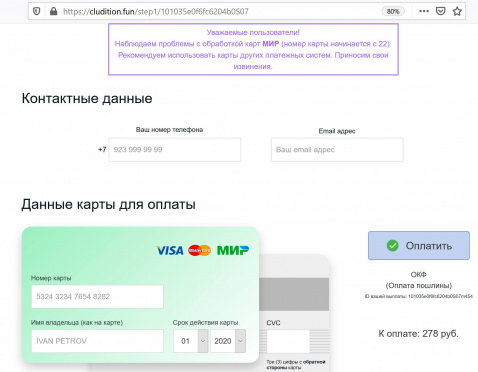 И там заботливо откроется окошечко, где нужно ввести данные карты. И тут становится понятно, чего они такую скромную сумму запросили. Могли и 5 рублей запросить, ведь когда вы вводите данные карты на сайте мошенников, все деньги с карты вы им и так уже подарили.