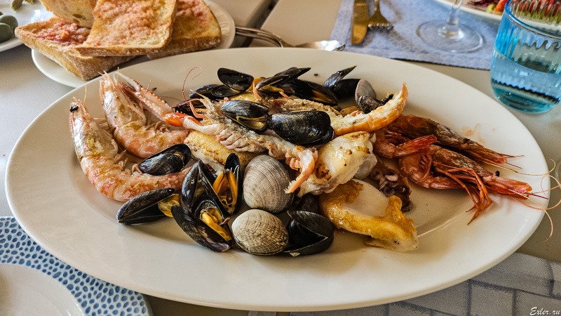 Ну и друзья взяли скромную тарелочку морепродуктов. Именно что скромную: приснопамятная "La Cantonada", где подавали огромное блюдо с морепродуктами, давно почила в бозе, и больше такой роскоши в наших краях не найти.