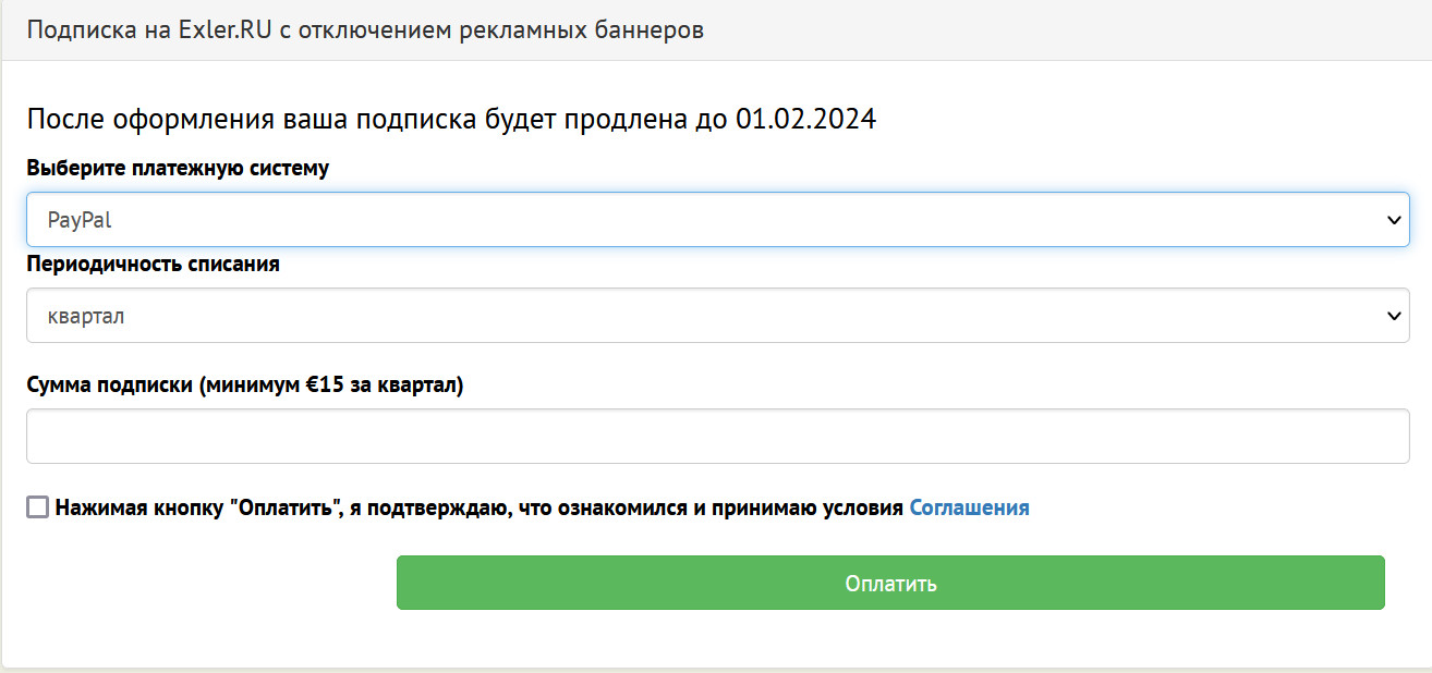 Кроме Patreon, есть возможность поддержки/подписки непосредственно на сайте. Вы можете подписаться на небольшую сумму через PayPal, минимальная сумма составляет $5 (или €5) и оплата списывается раз в квартал (из-за немаленькой комиссии), и это очень поможет проекту. $5 - это минимальная сумма, но вы, конечно, сумму подписки можете увеличить, если считаете это возможным. Да, и я вижу читателей, которые заметно увеличили сумму подписки (там есть подписки на €50 в месяц и даже больше), и я им очень и очень благодарен.