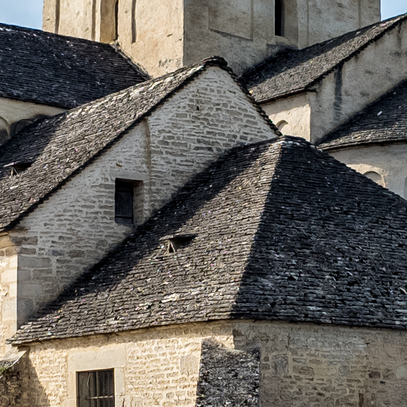 Обратите внимание на кладку крыши. Это старинная кладка из плоских обработанных камней. Чтобы крыша не пропускала воду, камни клались очень плотно в несколько слоев. Кладка очень надежная, и менять ее нужно раз в несколько веков. В городке задумываются, что крышу церкви пора бы уже перекрыть, но они пока не нашли специалиста, который бы мог работать с подобной кладкой.