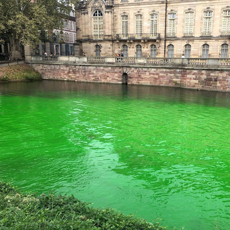 Очередная выходка ублюдков-экотеррористов. На этот раз они вылили в каналы французского города Кольмар краситель, чтобы "привлечь внимание к проблеме токсичных отходов". Ну и в результате там в реке начала умирать рыба.