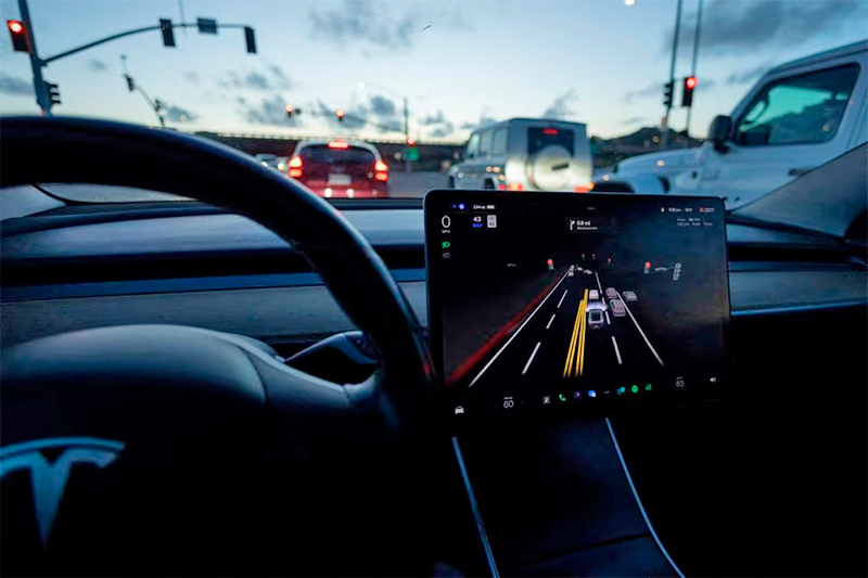 Автомобиль Tesla Model 3 демонстрирует использование программного обеспечения Full Self Driving Beta (FSD). REUTERS/Mike Blake