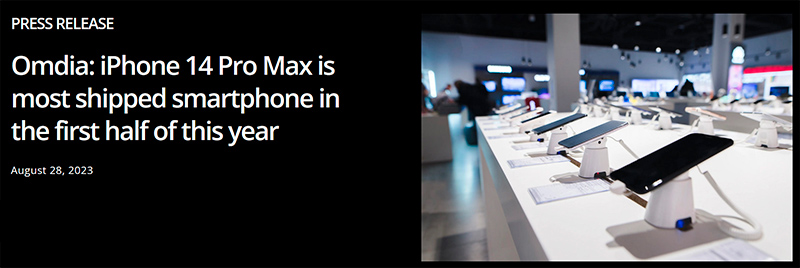 iPhone 14 Pro Max стал самым продаваемым смартфоном в мире в первой половине этого года: по данным Omdia's Smartphone Model Market Tracker - 2Q23, компания Apple отгрузила в общей сложности 26,5 млн. устройств. iPhone 14 Pro Max - самая дорогая модель 14-й серии, которую Apple выпустила в сентябре прошлого года и цена которой составляет от 1099 до 1599 долл.
