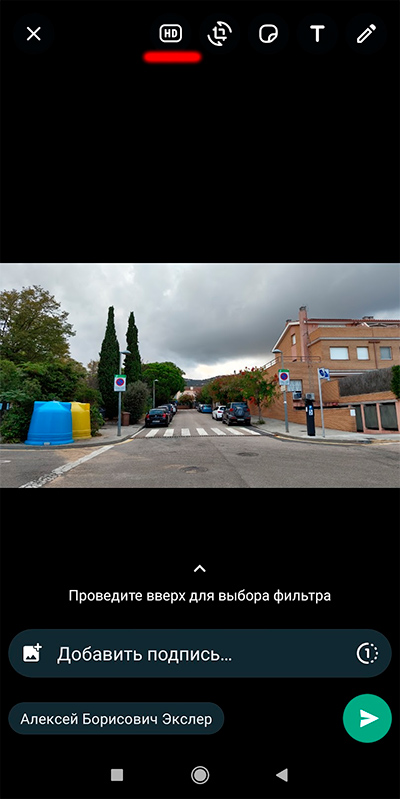 Картинку HD-качества WhatsApp помечает специальным значком (только в самом приложении, разумеется, никакие водяные знаки на нее не ставятся).