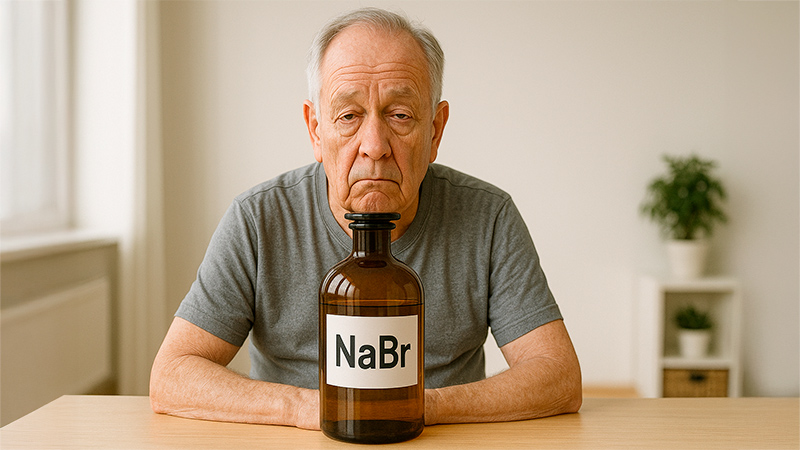 Натрий в NaBr безвреден, но ион бромида при накоплении в организме может вызывать хроническое бромное отравление (бромизм).