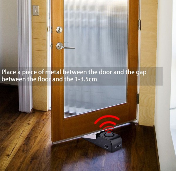 Прям как из того старого анекдотра "А ты дверь подпер"? Вот эта штука и устанавливается в паре сантиметров от двери, при открытии двери контакт замыкается, а динамик выдает 120 дБ. Тоже вариант, между прочим.
