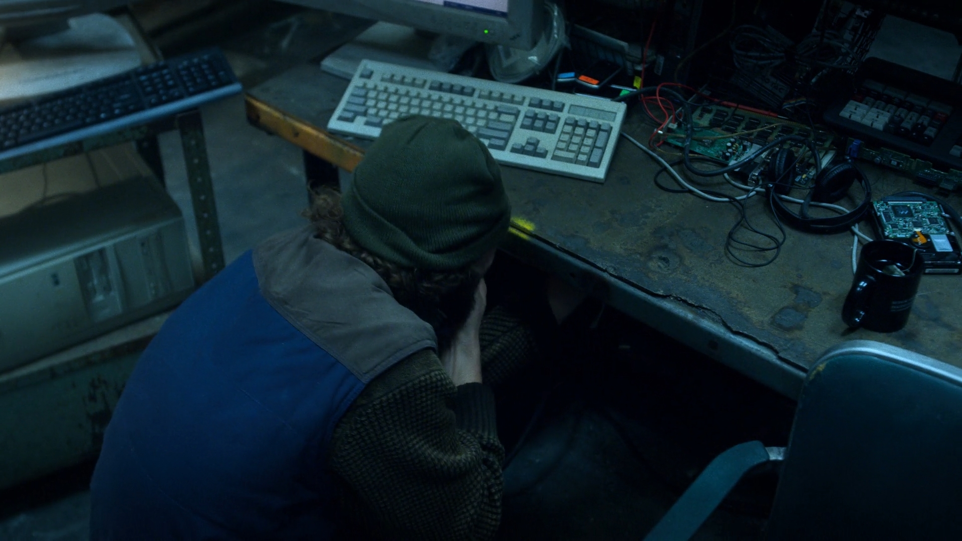 Смотрели вторую серию первого сезона. Там до "Карателя" доматывался какой-то мутный хакер, логовище которого реквизиторы собрали из того, что было. Поэтому в результате - какие-то клавы из середины девяностых, системные блоки с трехдюймовыми дисководами из девяностых, на столах стоят маленькие CRT-мониторы из девяностых, а когда мониторы показывают сзади - там уже здоровенные LCD-дисплеи из двухтысячных. В общем, мешанина полнейшая.