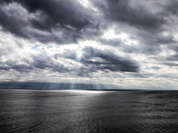 Сегодня на прогулке такой свет интересный был. Облачно, но с просветами, солнце на море создавало яркие световые пятна.