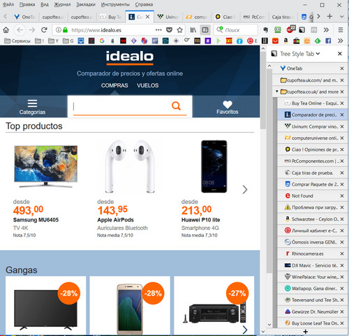 Tree Style Tab - вывод вкладок в виде списка - слева или справа окна браузера - и группировка их.