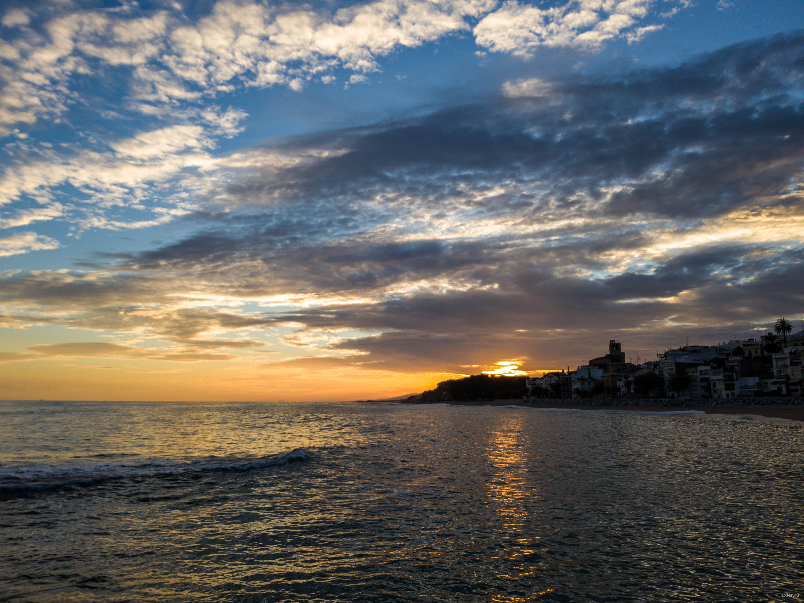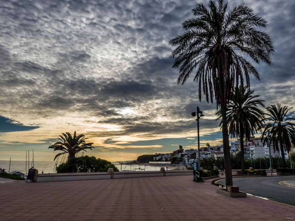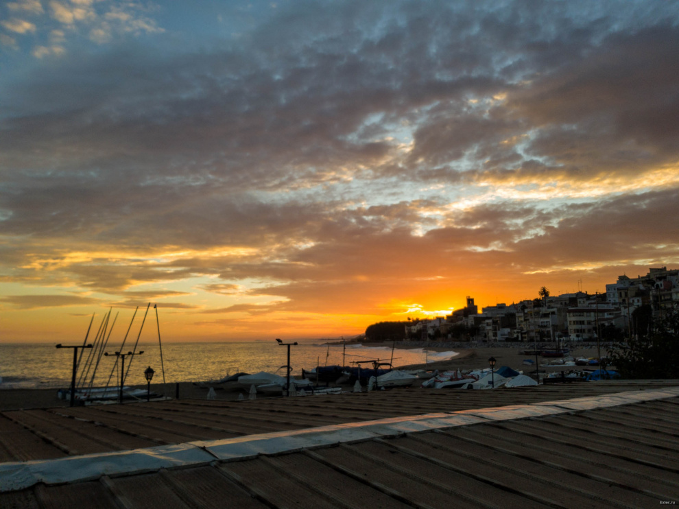Поснимал немного вечерком в соседнем городке Сан-Поль-де-Мар. Городок расположен в небольшом заливе, ну и там закаты, конечно, намного красивее, чем в нашей Калейе, где берег совершенно ровный.