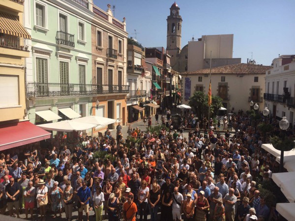 Барселона, сегодня, 12 дня. Минута молчания на La plaza de Catalunya.