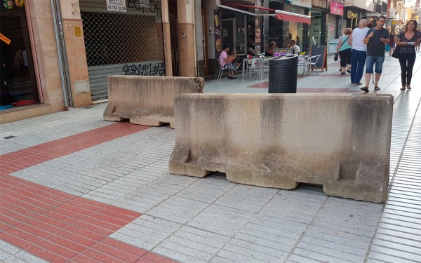 У нас на главной пешеходной улице города со стороны перпендикулярно проходящих улиц, где ездят машины, поставили вот такие заградительные бетонные блоки.