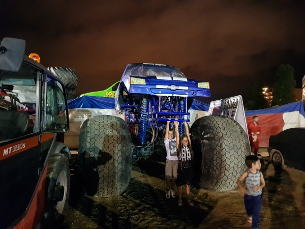 Недоверчивый крепыш с толстой шеей, который следил, чтобы никто не снимал, на шоу монстр-траков был занят - он таскал шины, - поэтому все наплевали на запрет и стали снимать, так что я хоть что-то могу показать.