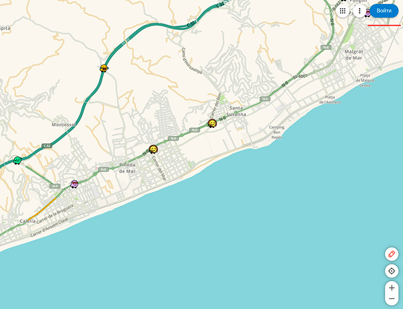 Что для этого нужно сделать? Зайти в браузере на сайт Waze. Справа сверху нажать на кнопку "Войти".