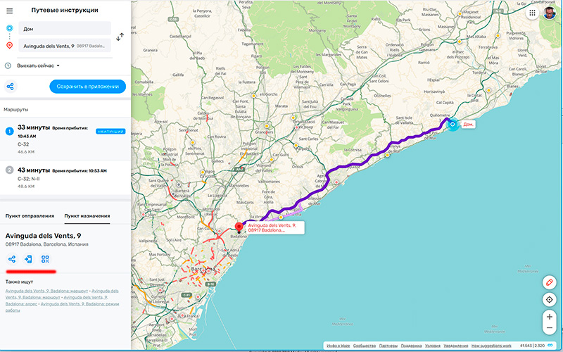 Единственное, чего мне в нем не хватало - так это возможности, как с Гуглом, на компе вбить скопированный адрес в карты Гугла, а потом маршрут отправить в смартфон, чтобы там вручную его не вбивать.