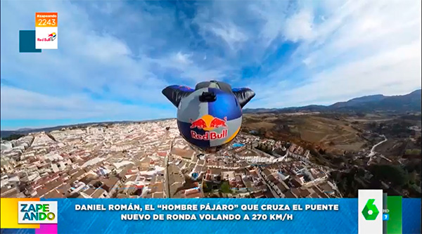 Даниэль Роман, также известный как "человек-птица", знаменитый спортмен-прыгун, который поставил перед собой задачу пересечь Новый мост Ронды через центральную арку диаметром около 15 метров только с помощью своего костюма с крыльями. На захватывающих кадрах вы можете увидеть его подвиг, в ходе которого он достиг скорости 270 километров в час.