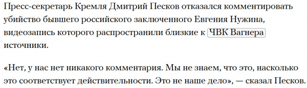 Заинтересовался ли Бастрыкин историей заключенного Евгения Нужина, который отбывал наказание в Рязанской области, непонятно с какой стати был освобожден и отправился воевать в ЧВК Вагнера, а сегодня распространили видео, где члены ЧВК Вагнера убивают Нужина, который перед этим попал в украинский плен, ударом кувалды по голове, причем путинский повар Пригожин назвал этот ролик "прекрасной режиссерской работой"?