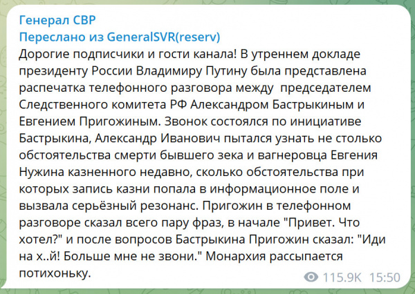 Нет, Бастрыкин этим совершенно не заинтересовался.