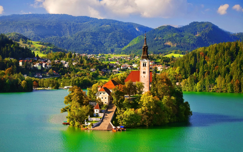 Напротив замка на озере Блед находится остров, на котором стоит церковь XVII века.