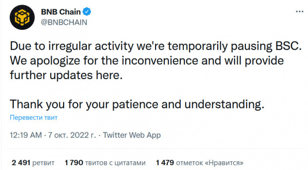 • $10 млн через BUSDКошелек оперативно отлетел в блэклист Tether, USDT по-прежнему с нами. Первая реакция от BNB Chain появилась только через 2 часа, и пока работа блокчейна приостановлена.