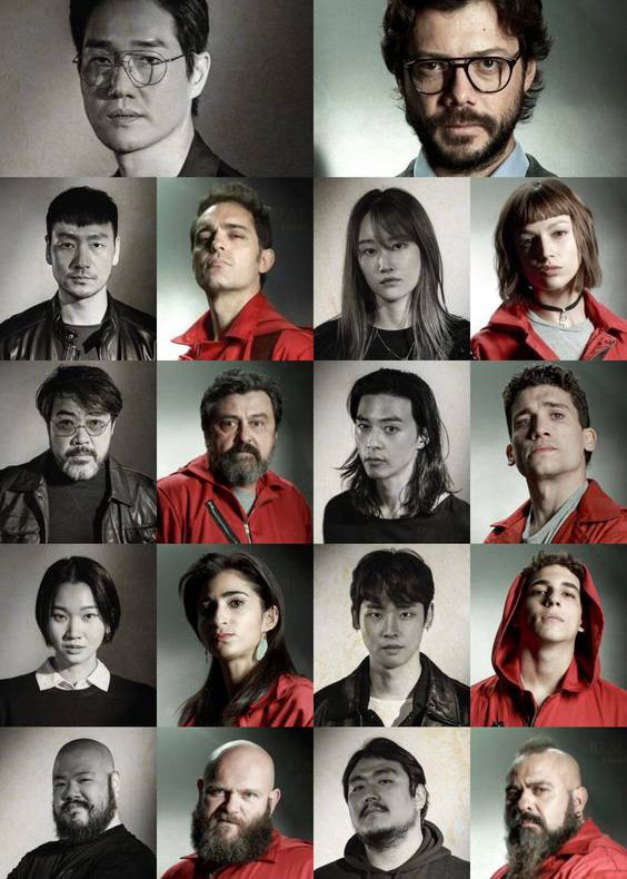 Профессора играет Ю Джи Тхэ ("Олд бой"), главу переговорщиков изображает Ким Юнджин (сериал "Остаться в живых"), в роли Берлина - Пак Хэ-су (сериал "Игра в кальмара").