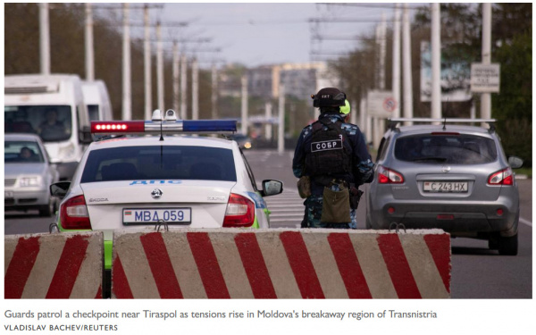 По оценкам западных должностных лиц, в Приднестровье, самопровозглашенной автономии Молдовы, находится уже 1500 российских военных. Силам, которые перебросят в Тирасполь из других регионов, придётся пересечь воздушное пространство Украины, а это может повлечь атаки сил украинских ПВО.