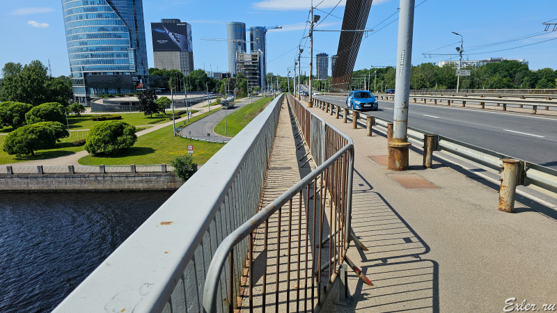 Вопрос. Вантовый мост в Риге. От перил на расстоянии где-то полуметра поставлены вот такие железные заграждения, причем они приварены намертво. На черта? Тем более что они изрядно мешают пешеходам, велосипедистам и самокатчикам, которых здесь немало.