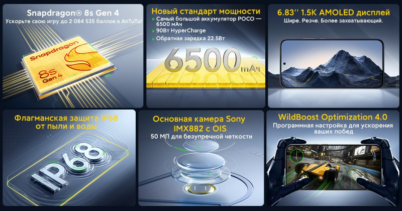 6500mAh, 90W HyperCharge, 22.5W обратная зарядка