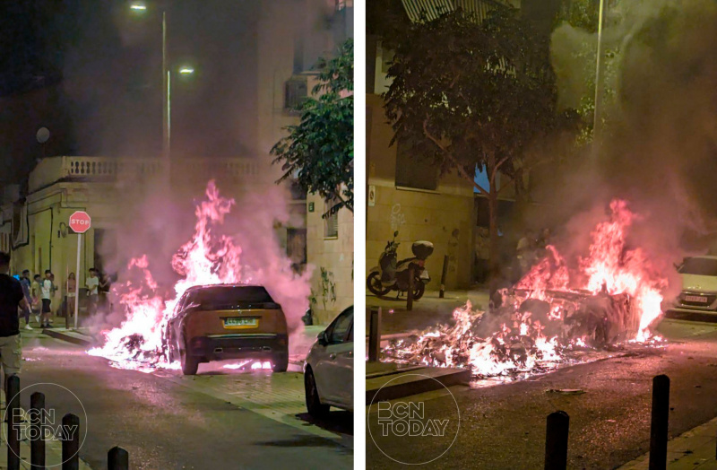 На Монжуике также сгорело несколько машин. Зрелище - то еще.