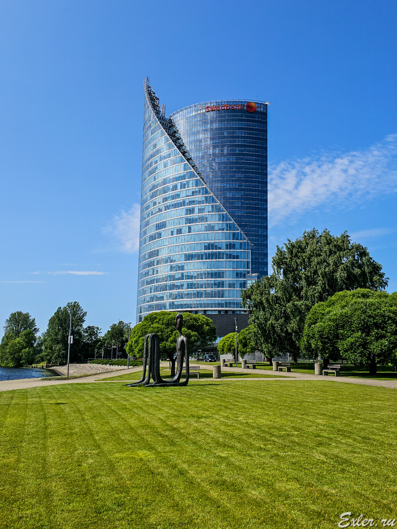 Это в предместье здание Swedbank и скульптура добросовестного заемщика перед ним.