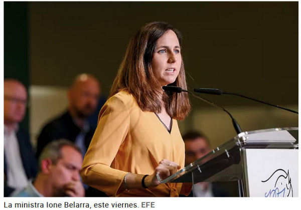Статья в El Mundo - "Belarra pide una "movilización masiva" contra el envío de armas y Robles responde: "Ojalá convenza a Putin"".