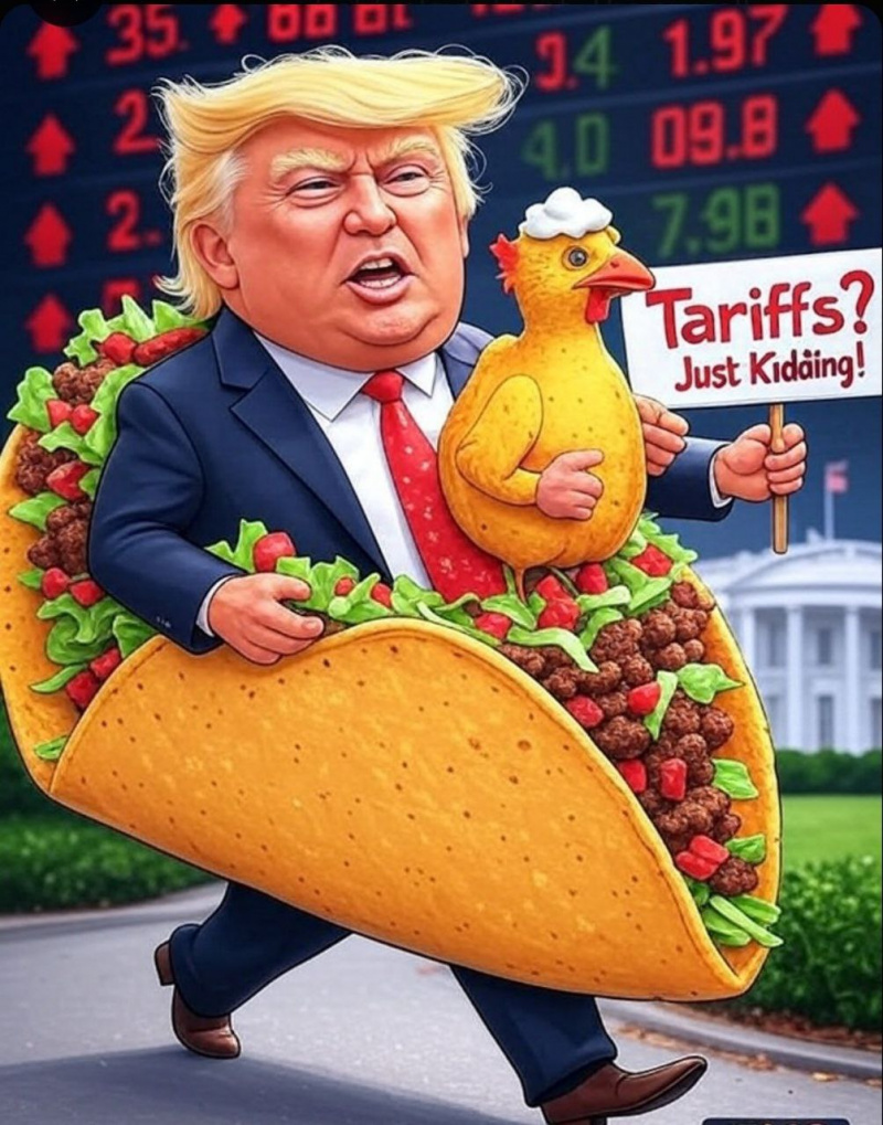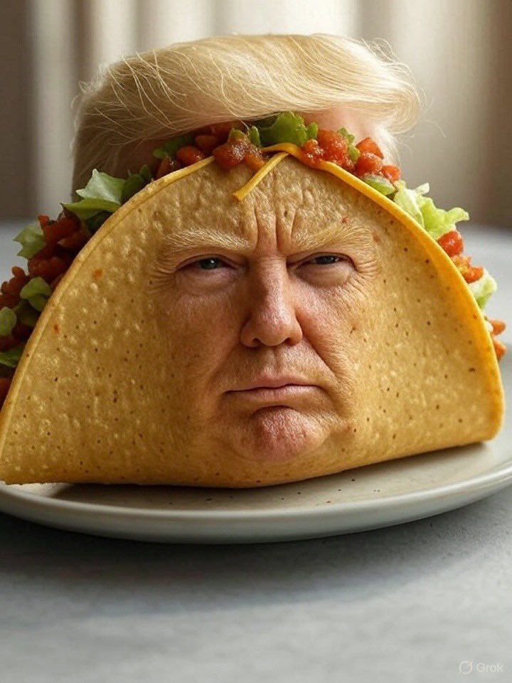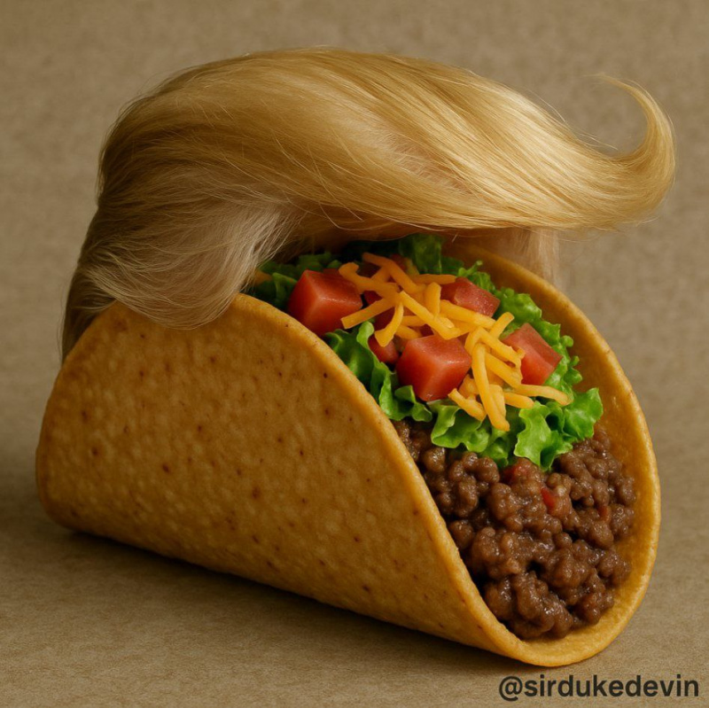Похоже, что термин TACO в отношении Трампа стал трендом. Вчера Сеть наводнили фотожабы (подборка отсюда).