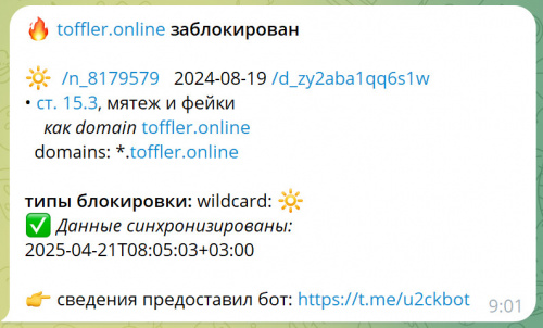 Upd: Заблокировали toffler.online. Зацените формулировочку.