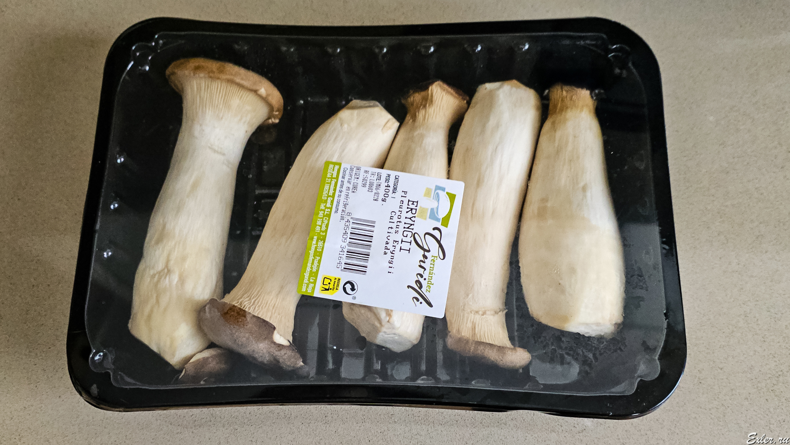 Попались тут в магазине Makro необычные грибы - я такие не встречал. По-испански называются эринги, по-русски, как я понял, еринги, они же королевские вешенки. Пишут, что содержат много полезных элементов и витаминов, имеют ярко выраженный вкус, напоминающий белый гриб.
