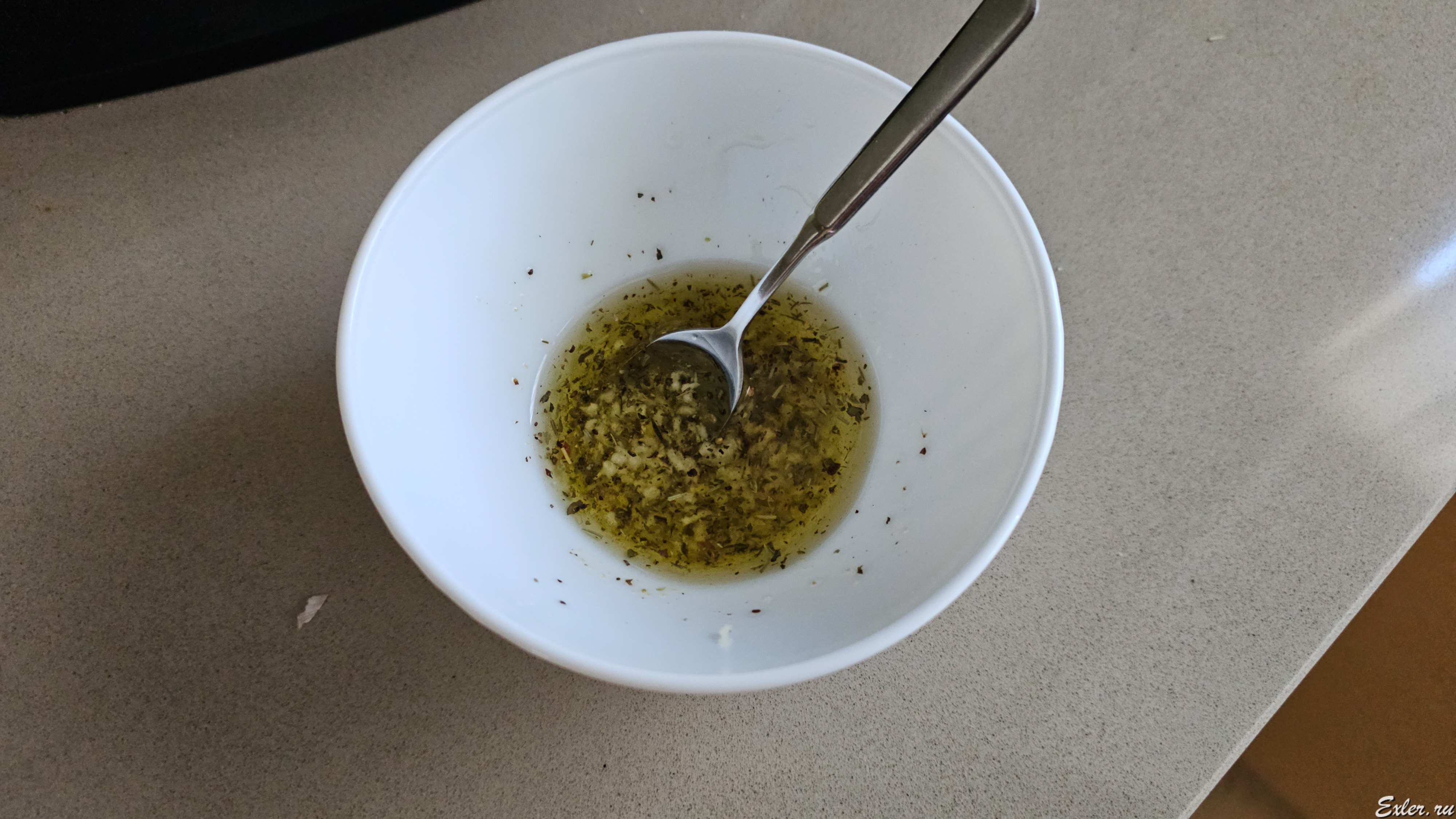 Подготовил соус: оливковое масло, давленый чеснок, перец, прованские травы.