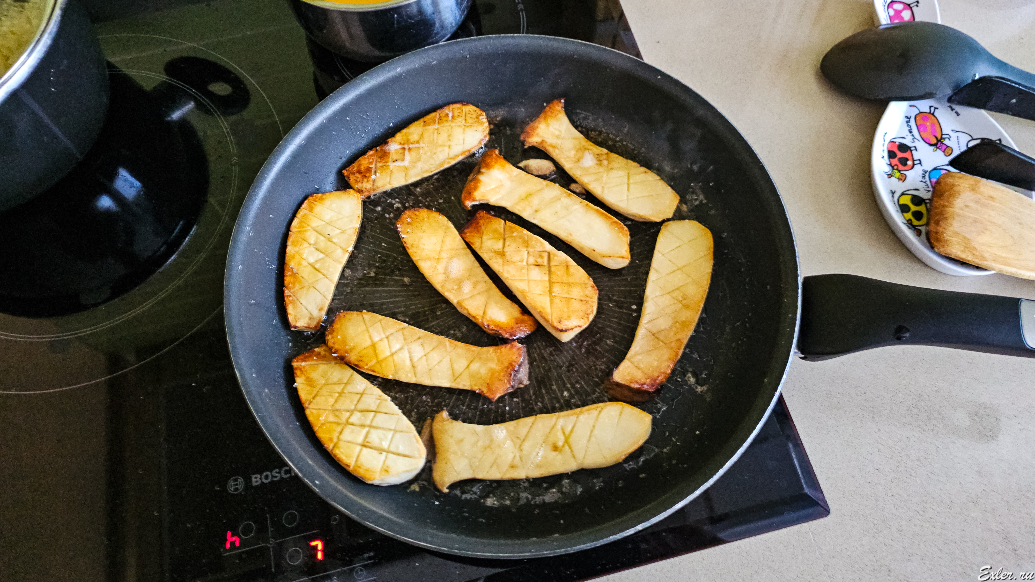 Почитал как готовить. В основном, советуют разрезать вдоль на половинки или на пластинки, сделать небольшие надрезы, чтобы быстрее прожарилось, жарить по 3-5 минут на стороне на сливочном масле, перед употребление полить оливковым маслом с чесноком и специями.