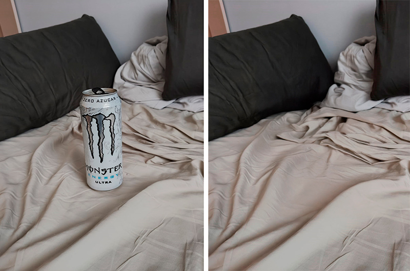 Сын присылает две картинки. Смотри, говорит, как искусственный интеллект хорошо работает - банку убрал очень чисто.
