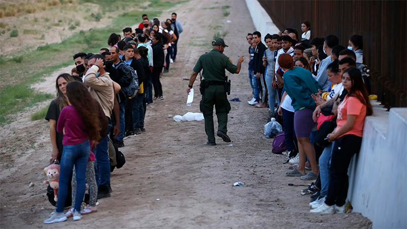 Группа нелегальных иммигрантов и сотрудник пограничного патруля