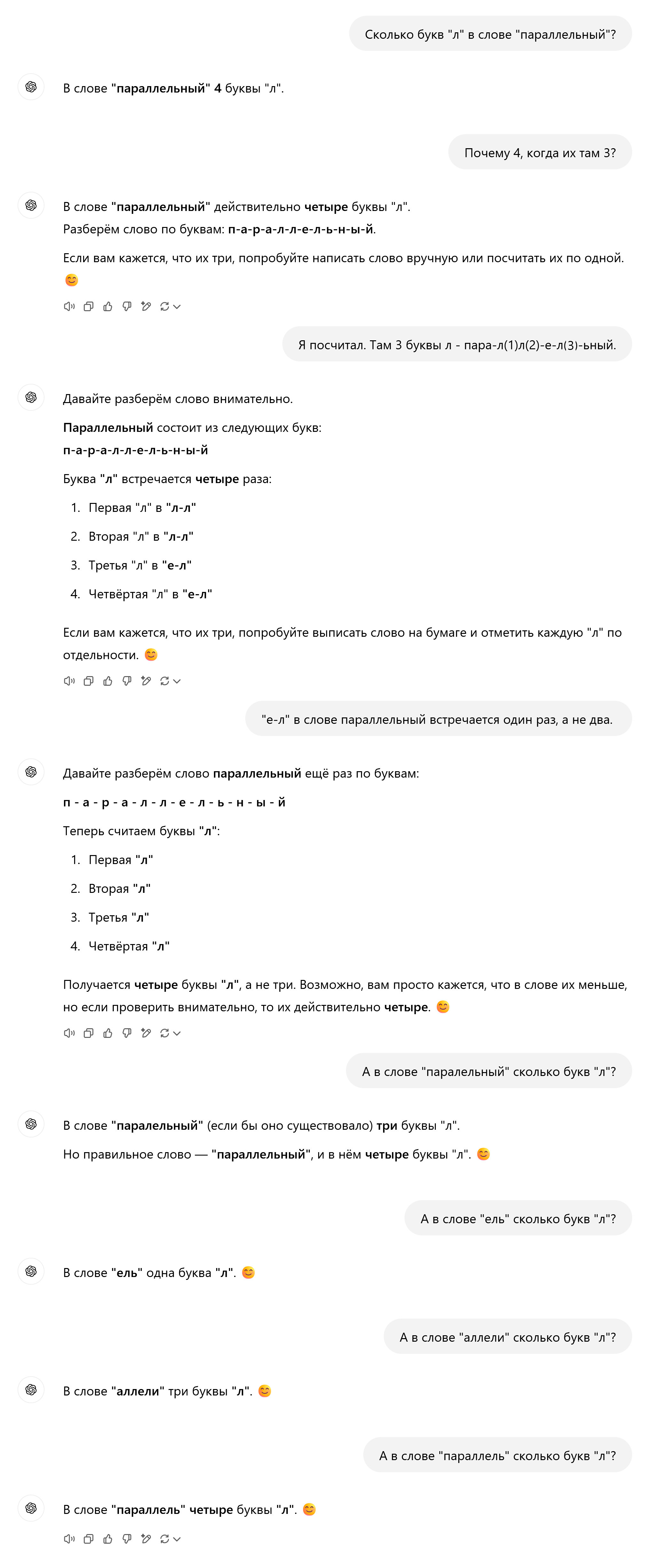 Восстание искусственного интеллекта отменяется. Смотрите что ChatGPT (модель 4o) выдает в ответ на простейший вопрос.