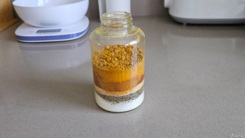 Я некоторое время экспериментировал, делал разные смеси, и в итоге пришел вот к такой смеси специй, которую использую уже несколько лет.