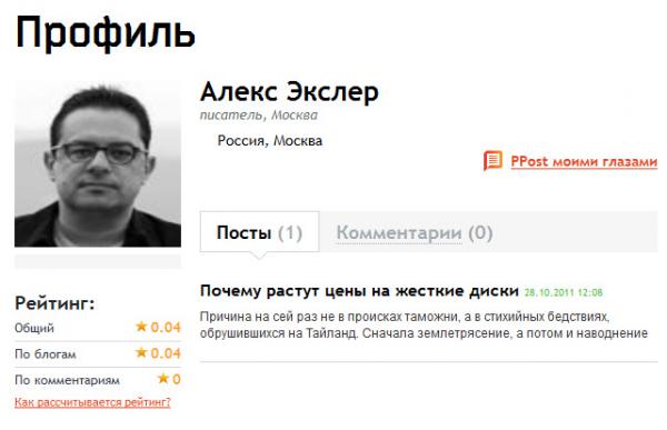 Полез из интереса проверить - ну да, я тоже резко завел блог на их "публикпосте" - вот он я, красавец, с изуродованной фотографией. Даже пост я там сделал - с перепечаткой статьи Вильянова. Совсем эти ребята охренели.