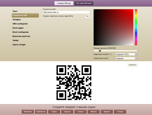 Я в "Ликбезе" писал про QR-коды. Сегодня прислали ссылку на крайне удобный сайт для создания этих QR-кодов - QR Mania. Выбирается вид данных, можно варьировать различные параметры, а после создания QR-кода его можно распечатать на чем угодно - майка, кружка, сумка, брелок, стикер и так далее. Полезная страничка, однозначно. Из всего что я видел для решения данной задачи - наиболее комфортный.