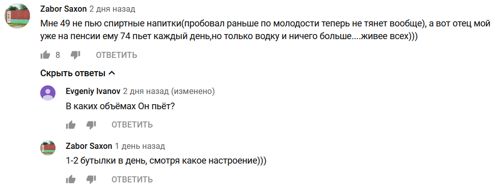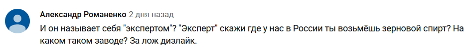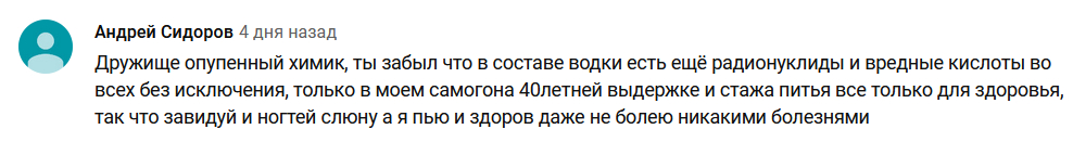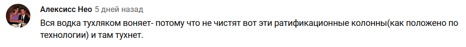 Мне про водку совершенно неинтересно, я уж и не помню, сколько десятков лет назад я ее последний раз вообще пил, а вот комменты под роликом - майский день, именины сердца! Обожаю читать комменты к таким роликам, это же совершенно незамутненная чистая радость!