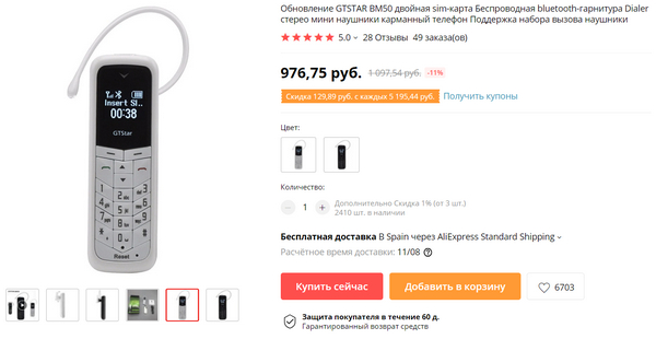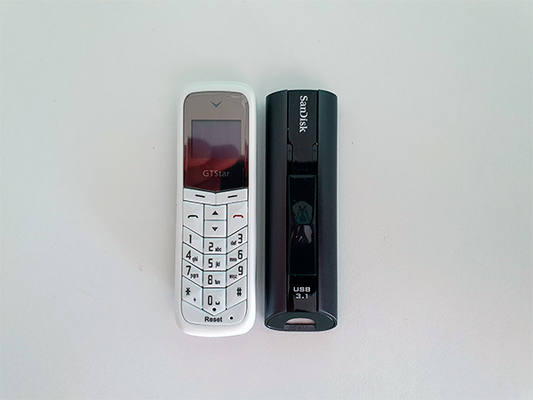 Кроме того, у него есть дополнительная крышка - без крепления в ухо. И с ней он превращается в обычный мини-телефончик размером с флешку.