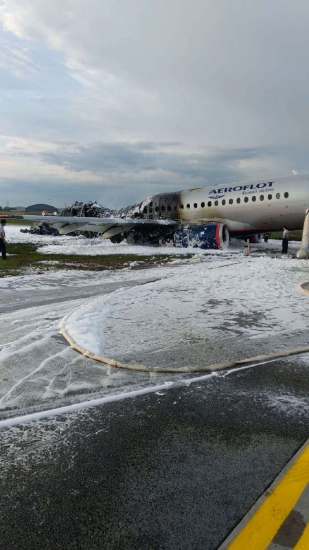Суперджет запросил посадки сразу после взлёта. Приземлился через 22 минуты, пассажиры и экипаж оказались в дыму и пламени.
