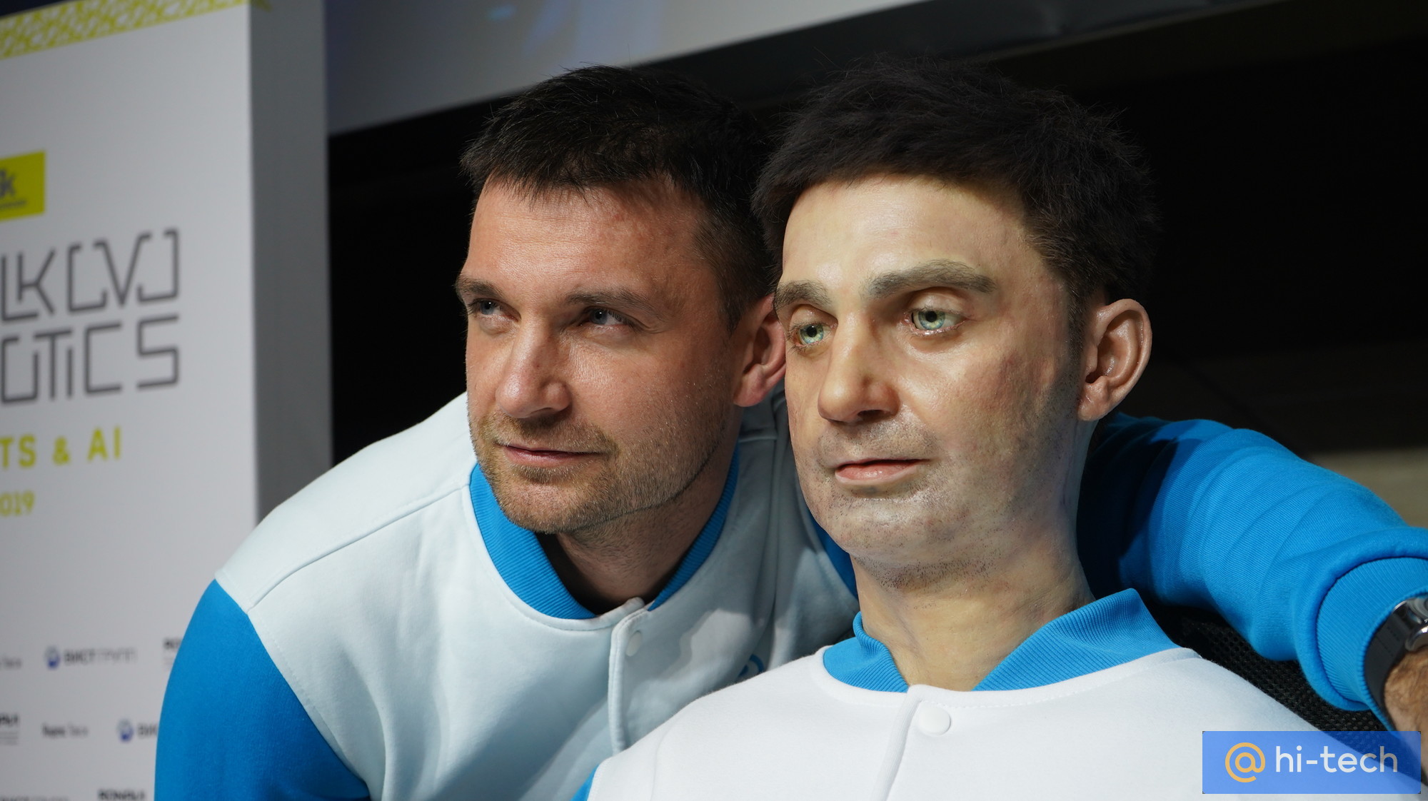 «Алексею на лицо и шею несколько раз наносили специальный состав, чтобы сделать отпечаток», — объясняет Олег Кивокурцев, директор по развитию Promobot. Этот оттиск залили силиконом, который играет роль кожи. А затем надели «кожу» на металлический каркас-скелет.
